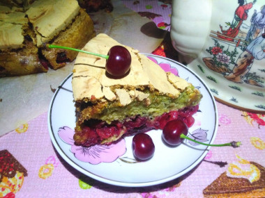 Вышел изумительный вишнёвый пирог! Очень нежный, воздушный и мягкий бисквит с большим количеством ягоды. Вишневая шарлотка в меру сладкая с лёгкой вишнёвой кислинкой. Потрясающе вкусно! А сверху на пироге образовалась великолепная шапочка, она очень похожа на безе) Такую шарлотку обязаны попробовать все! Фантастически вкусно! Огромное спасибо за столь вкусный десерт!!!