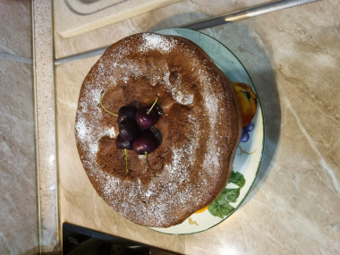 Выпекайте пирог в предварительно разогретой до 170°С духовке около 40-55 минут. Точное время зависит от вашей духовки. Во время выпекания дверцу духовки не открывайте, чтобы бисквит не осел.