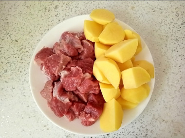 Как сделать жаркое из говядины в мультиварке? Подготовьте для этого необходимые ингредиенты. Для приготовления можно использовать любой вид мяса. Я буду готовить из мяса говядины. Выбирайте мякоть без костей. Картофель заранее очистите от кожуры и ополосните от загрязнений.