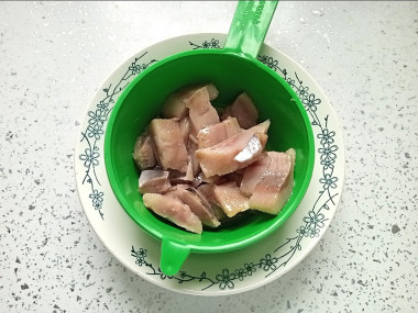 Селедку выпотрошите и разделайте на чистое филе без кожи и костей. О том как разделать рыбу на филе вы сможете прочесть в конце рецепта.