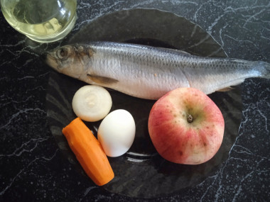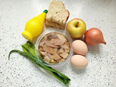 Как сделать еврейский форшмак классический из селедки? Подготовьте все необходимые продукты. Сельдь лучше купить целую, слабосолёную или пряного посола. Либо же засолить самим, так будет вкуснее. Яблоко предпочтительней брать кислое, идеально подойдёт Антоновка или Симиренко. А вот лук выбирайте не сильно "злой", предпочтительнее лук сладких сортов.