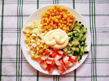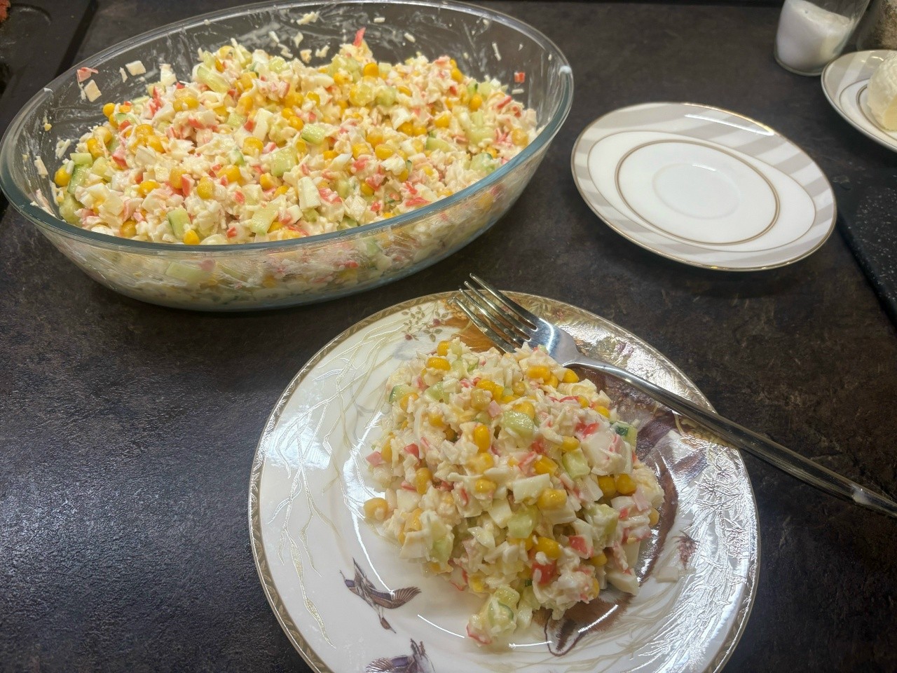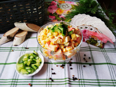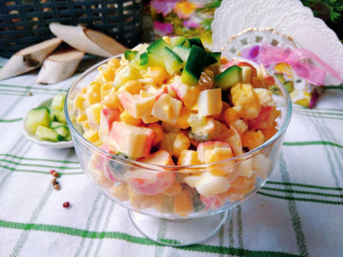 «Крабы на пляже». Так мы назвали крабовый салат с кукурузой классический без риса