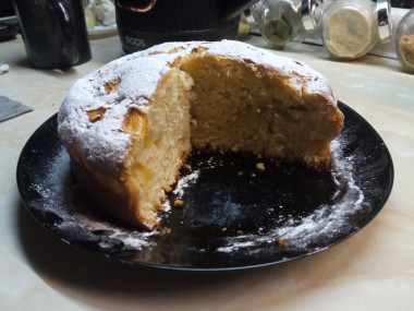 Всем привет. Приготовила вашу шарлотку, просто суперская. Времени мало занимает на приготовление, вкус отменный, порция для нашей семейки маленькая.