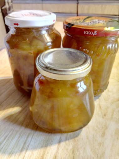 Спасибо за рецепт! Решила попробовать "безотходное производство", так как арбузы любим и едим много. Получилось вкусное и необычное варенье! Цедру не очищала, просто порезала лимон кубиками как и корки, получилась аккуратная масса. Кусочки не разваренные, плотные, есть что пожевать ))), все как я люблю. Спасибо. На фото - количество из 1 кг корок.