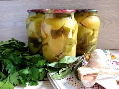 Из зелени у меня были листья хрена, петрушка и последние листики черной смородины. Утрамбовала все вместе с чесноком и горошком черного перца. Три банки я закатала горячим способом с добавлением уксуса и еще одну банку оставила усаливаться в холодильнике. Я знаю, что на это нужно не менее сорока дней. Будем пробовать, как придет время). Думаю, будет очень вкусно!
