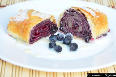 очень люблю штрудель:) вишни под рукой не оказало, приготовила с черничным вареньем