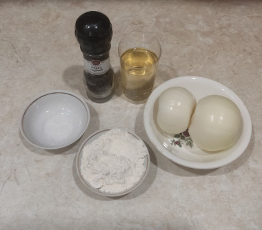 Как сделать хрустящий лук фри для хот догов, салата и закуски? Очень просто, сначала подготовьте все необходимые ингредиенты. По желанию можете дополнительно взять любимые специи и приправы.