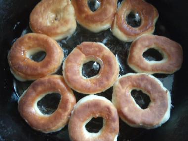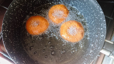 🔹 Для равномерной прожарки слегка придавливайте пончики шумовкой