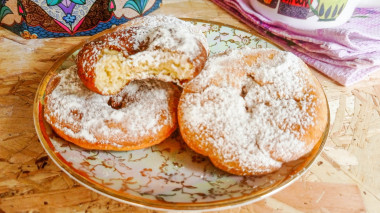 Пышные пончики на кефире быстро готовятся, а получаются воздушные и мягкие! Тесто для пончиков замешивается достаточно быстро. На среднем огне они хорошо обжариваются до румяного цвета и не подгорают. Подавала к столу с сахарной пудрой. Спасибо автору за рецепт!