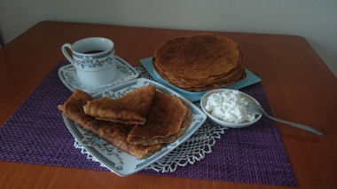 Это блины "рабоче-крестьянские", фактурные на вкус с сохранением "кружева". При желании придать нежности можно за счет топингов и начинок.