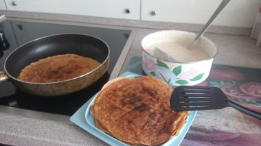 5. На разогретой сковороде, предварительно смазанную растительным маслом, жарим блины с двух сторон.