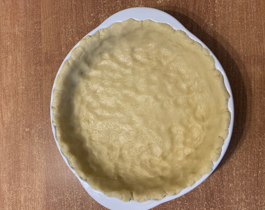 Распределите тесто по дну и бортикам застеленной пергаментом разъемной формы (Ø 22-24 см). Бортики можете сделать пониже или повыше, как вам больше нравится. Если в комнате жарко, поставьте форму с тестом в холодильник.