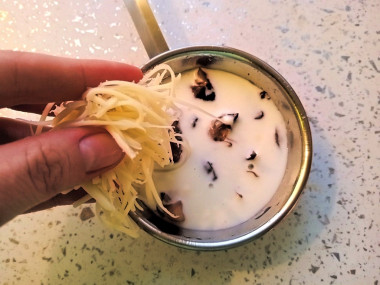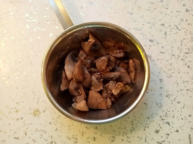 Если готовите жульен не сразу, сделайте грибную заготовку накануне и отправьте в холодильник настаиваться. На следующий день принимайтесь готовить блюдо, так будет быстрее и проще.