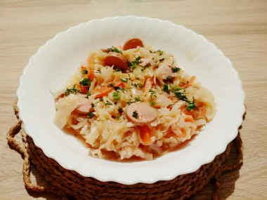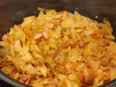 Для наглядности смотрите видео к рецепту тушеной капусты с сосисками.