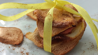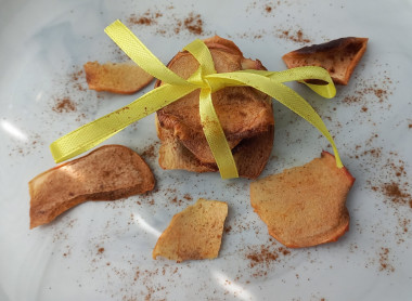 Как обычно, заготовила яблочное варенье, компот. Захотела попробовать яблоки в необычном варианте приготовления. Давно смотрела, как готовят, фруктовые и овощные чипсы. Очень аппетитные они получаются с заманчивым хрустом. К сожалению, сушилки нет и я пока останавливалась на идеи, чтобы также приготовить вкусное и полезное лакомство для всей семьи.