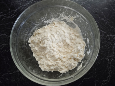 Муку просейте с разрыхлителем и солью, всыпьте на масло. Все тонкости использования в выпечке разрыхлителя читайте в статье в конце рецепта.