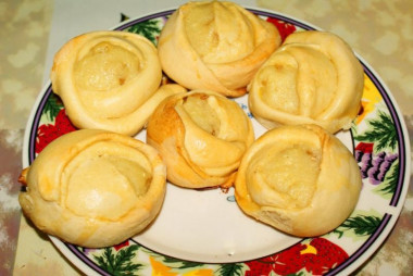 Может кому пригодится рецепт дрожжевых булочек розочек с сахаром на воде.
