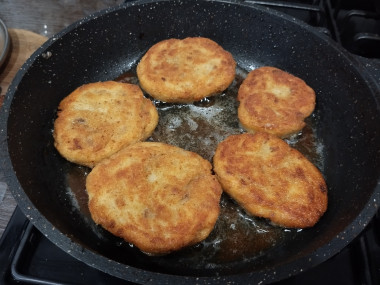 Обжаривайте их с двух сторон до золотистого цвета. Готовые котлеты снимите, можете выложить их сразу на бумажное полотенце, оно впитает лишний жир.