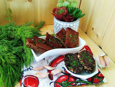 Как сделать черные гренки с чесноком? Уделите внимание выбору хлеба - это напрямую влияет на вкус конечного блюда. Будет лучше, если вы возьмете вчерашний хлеб, который не крошится и хорошо держит форму. Нарежьте ржаной хлеб ломтиками одинаковой величины, срежьте корочки.