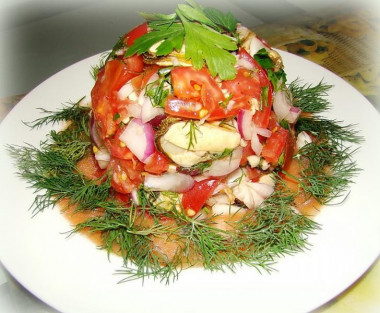 Яркий, полезный, гармония вкуса на праздник и каждый день! Салат с мидиями и помидорами получается легкий, но и питательный. Мидии отлично сочетаются с овощами и салатной заправкой. Для разнообразия можно взять и другие морепродукты: кальмары или креветки, дополнив их теми же или другими овощами. Попробуйте!