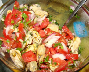 Мидии содержат большое количество легкоусвояемого белка, макро- и микроэлементы. Они вносят в салат изюминку и обогащают его полезными свойствами.