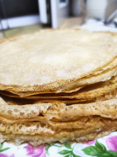 Отличный рецепт! Делала двойное количество теста. Немного пришлось разбавить водой, чтобы блины не получались сильно толстые.