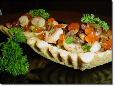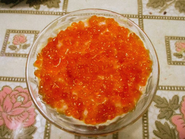 Салат с креветками и красной икрой