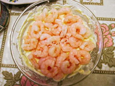 Выложите оставшиеся креветки. И снова майонез.