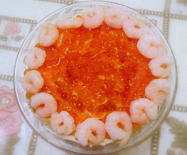 Отличный праздничный салат для тех, кто любит икру и креветок. вкусно и по богатому. Готовится легко.