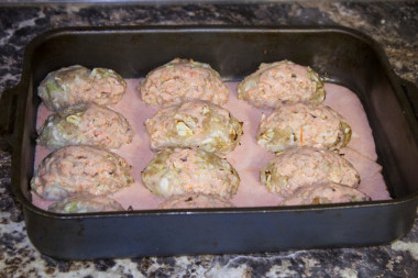 Форма: вместо заворачивания начинки в капустные листья, все ингредиенты (фарш, рис, капусту) смешивают и формируют из массы котлетки или тефтельки.