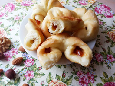 Такие рогалики вкуснее в свежем виде - от них исходит приятный аромат, который невозможно игнорировать! Можно запивать их молоком, какао, чаем или кофе. Кушайте их сами и угощайте родных и друзей!