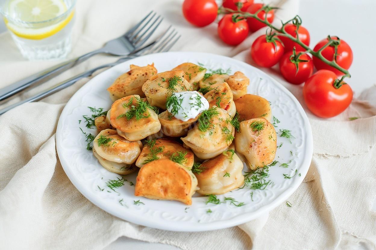 Пельмени снимите со сковороды и выложите в блюдо для подачи. Посыпьте их мелко рубленной свежей зеленью и подавайте к столу с любимым соусом. Приятного аппетита!