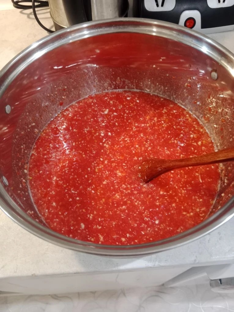 Хороша чертовка, острая. Как я и люблю. Только на 3 кг , я чеснока положил 153 гр и чили 13 гр..Считаю по калькулятору на 3 кг помидор 40 гр чили многовато, получится адская смесь.