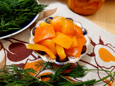 ).Как ни странно,в моей семье к консервированным перцам прохладное отношение,любим больше в свежем виде.И поэтому делала на пробу всего четыре маленькие баночки,получился очень вкусный деликатесный перчик!