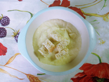 Подавайте суп-пюре из кабачков с гренками из белого хлеба и веточкой свежего укропа. Приятного аппетита!