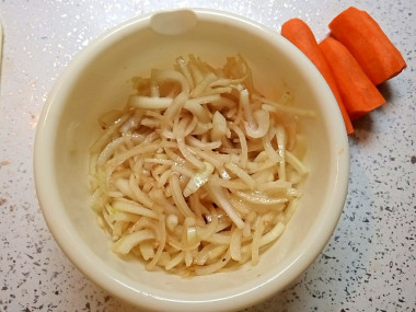В сковороде разогрейте 2 ст.л. растительного масла. Отправьте морковь, лук и болгарский перец на сковородку. Помешивая, оставьте овощи на сильном огне буквально на минуту-две. Они не должны стать мягкими. Овощи должны лишь хорошо прогреться.