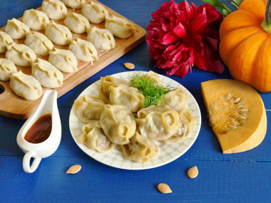 Одно из самых моих любимых блюд, но в моей семье не все любят тыкву, поэтому такие манты делаю исключительно для себя. Всегда получается очень вкусно и сочно. Тыкву я режу мелкими кубиками, а для сочности можно положить в манты маленький кусочек масла. Всем приятного аппетита!