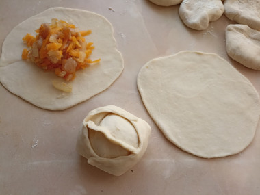 Раскатайте каждый кусочек теста в тонкий кружок.