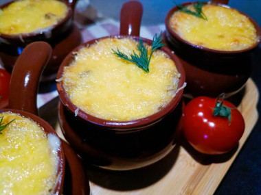 Готовила жульен по этому рецепту, получилось всё быстро, просто, а самое главное вкусно! Обжарила лук с грибами, курицу тоже обжарила на отдельной сковороде, всё таки, такой вариант мне нравится больше. Раньше соус не делала, а сразу добавляла сметану в сковороду к грибам и курице, решила в этот раз сделать соус, как в рецепте. Соус очень понравился, получилась очень нежная консистенция с приятным сливочным вкусом. Добавила соус в сковороду, всё перемешала, переложила по формочкам, сверху сыр и в духовку.