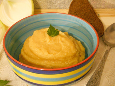 Получилось нежное кремообразное пюре! Оно очень вкусное! Привкуса соды я не обнаружила.