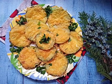 Давно хотела приготовить кабачки в кляре в духовке, но не знала как сделать это вкусно. Оказалось, что блюдо по этому рецепту получается не только очень вкусным, но и быстро готовится. Это несомненный плюс) У меня был полосатый кабачок грушевидной формы. Широкую часть я нарезала кружками и сразу начала перемещать их по тарелочкам. Как в сказке искупала их в муке, потом в яйце, а на последок в сыре, натертом на средней тёрке) Сыр отлично прилипает и во время запекания хрустящая корочка образуется и снизу и сверху! Запекала эту красоту примерно 15 минут. Как только сыр стал румяниться, вынула из духовки. Кабачки при этом легко протыкаются вилкой, но не расползаются. Сырный кляр помогает кабачку сохранять форму. Это блюдо очень вкусное, сытное и не жирное! Особенно понравится любителям сыра)