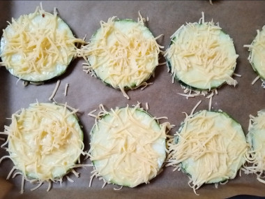 На противень уложите пергаментную бумагу. При необходимости смажьте маслом. С выбором пергамента поможет статья по ссылке в конце рецепта. Разложите на противне кабачки. 5. Отправьте противень с кабачками в разогретую духовку на 10-15 минут. Выпекайте до появления румяной корочки. Точное время будет зависеть от особенностей вашей духовки. Узнать об особенностях работы духовок можно, прочитав отдельную статью, ссылка в конце рецепта.