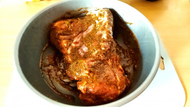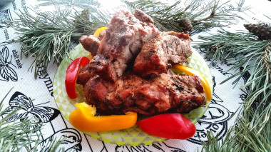 Очень хотелось мяса, обязательно ребрышек. Увидела рецепт Ребрышки свиные в фольге и решила приготовить по этому рецепту. Мясо я купила большим куском, мякоть, но с ребрышками. Эти ребрышки я отрезала так, чтобы на них еще было достаточно мяса. На порции ребрышки делить не стала, хотелось запечь целым куском. Из специй- хмели-сунели, кавказские травы, чеснок и аджика. Все вместе смешала с томатной пастой и завернула в два слоя фольги. Отправила в духовку на медленный огонь. Через полтора часа аромат пряных трав и чеснока проник даже на лестничную площадку. Выдержав для верности еще минут 15, вытащила форму с ребрышками из духовки освободила от фольги, затем нарезала на кусочки и подала с отварным рисом. Подрумянивать до корочки как в рецепте не стала, пропеченные ребрышки итак выглядели вкусно и пахли умопомрачительно. Мясо на ребрышках хорошо пропеклось, легко отделялось от костей, и было очень сочным. Еще в фольге остался сок от ребрышек, им я полила гарнир. Такие ребрышки в фольге идеальное дополнение к отварному рису, очень сытный и вкусный обед. Благодарю за рецепт.