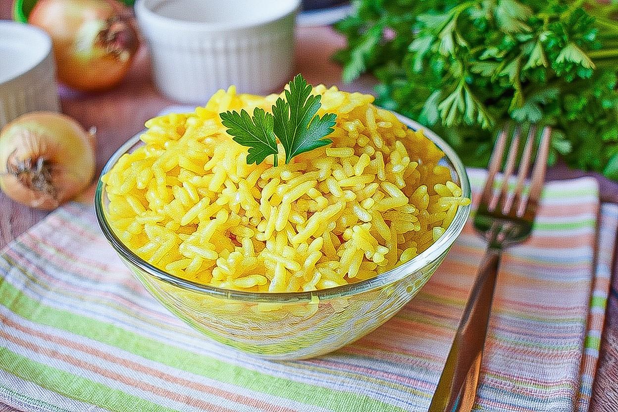 Замечательная идея готовить рис с луком на гарнир на сковороде. У меня, как и у автора, рис длиннозерный, пропаренный. Я его промыла 9 раз, замочила на час в воде. Потом еще раз промыла. Отличный совет - добавить сливочное масло, вкус становится мягкий, бархатный. Специи никакие не добавляла, кроме куркумы. Рис получился великолепный, необыкновенно красивого цвета. Гарнир просто праздничный, такой "нарядный", парадный. Огромное спасибо, в первую очередь, за эстетическое удовольствием, потом за гастрономическое наслаждение!