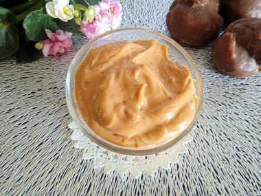 Нам этот крем понравился. Он достаточно густой, держит форму! На вкус чувствуется легкая кислинка и карамельная сладость вареной сгущенки!