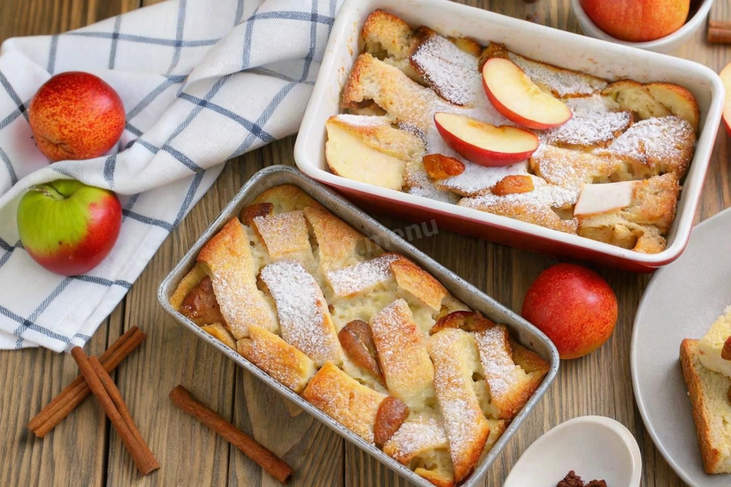 Американская хлебная запеканка, или страта – это идеальный способ использовать черствый хлеб, превратив его в ароматный и сытный десерт. Блюдо получается нежным, слегка карамелизированным благодаря яблокам и корице, а яично-молочная заливка делает его похожим на пудинг. Это быстрый, бюджетный и вкусный вариант завтрака или сладкого перекуса.
