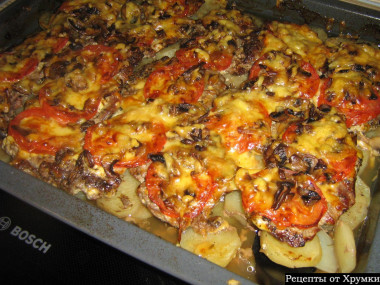 Елена, а в нашей семье в это забытый рецепт! Помню мы добавляли еще слой ветчины, тем самым появлялся пикантный вкус и выкладывали порционно - горками) и называли этот рецепт "Мясная горка")))