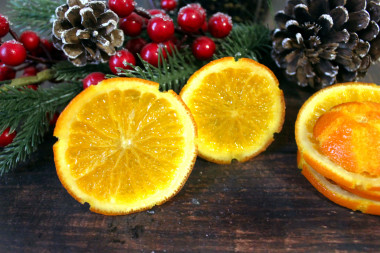 Отзыв 3: Перевязанная бечевкой стопка круглых цукатов из апельсина смотрится очень ярко. Продольные надрезы делают такие цукаты выигрышными.