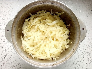 У капусты снимите верхние поврежденные листья, удалите кочерыжку. Капусту нашинкуйте. По желанию вместо свежей капусты можете использовать квашеную.