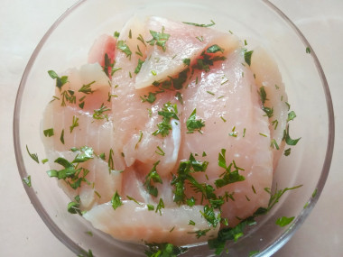 Теперь сбрызните получившимся маринадом кусочки филе и оставьте рыбу на 1— 2 часа пропитаться маринадом.